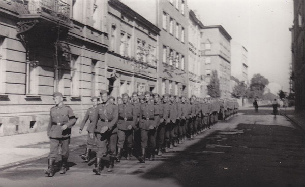 "Нахтіґаль" на вулицях Львова (хто впізнає місце, відпишіться в коментах). На чолі колони, схоже, Роман Шухевич. Фото з архіву ЦДВР