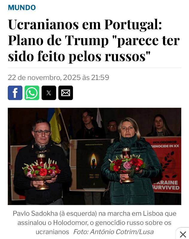 Президент Української асоціації в Португалії вважає, що мирний план, представлений Сполученими Штатами, «є катастрофічним планом для України» та, «схоже, був складений