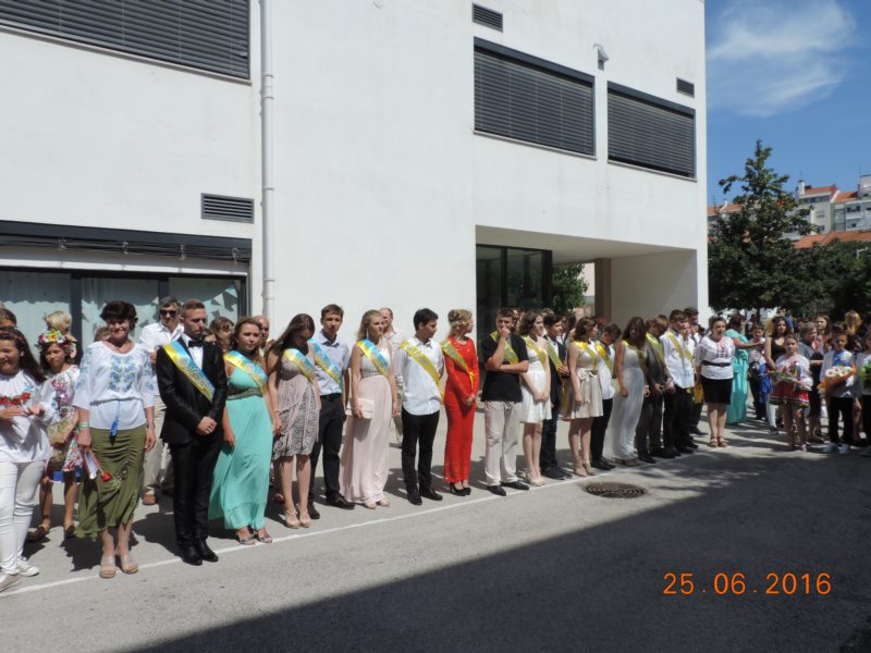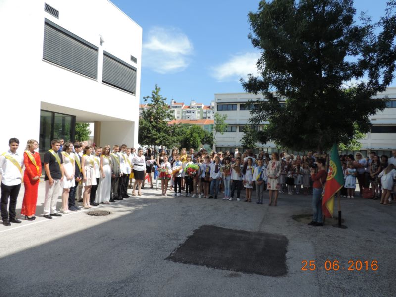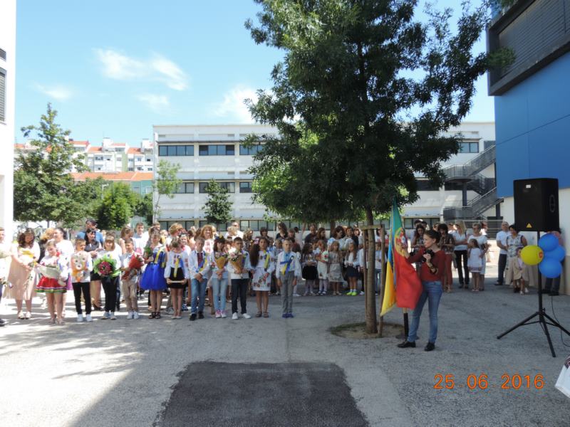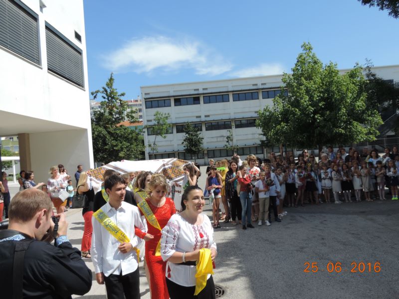 Із щирою молитвою та благословенням виступив священник УГКЦ о. Микола. Із теплими словами виступила перед учнями школи почесна гостя - Посол України в Португалії Інна Василівна Огнівець та віце президент Спілки українців у Португалії О. Гарасимчук , яка запевнила, що Спілка українців і на дальше буде допомагати та сприяти розвитку к/о центру. Голова батьківського комітету В. Тимчишин висловив щиру подяку вчителям, які допомагають учням здобувати знання, виховують їх в українському дусі, навчають українських традицій у цій далекій від рідної землі країні. Подяку вчителям висловили і випускники 11 та 9 класів та виконали пісню "ОСТАННІЙ РАЗ" Скрябіна.