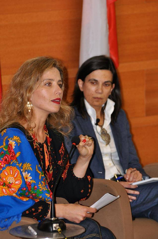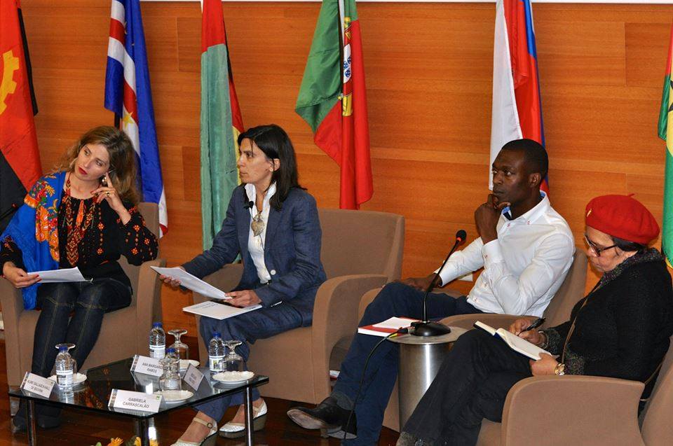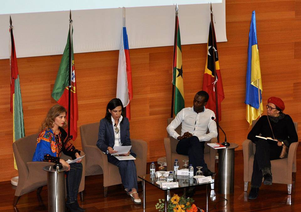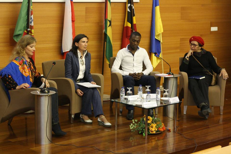 Os participantes no debate: Aline Gallasch-Hall de Beuvink — em ESTGA - Universidade de Aveiro