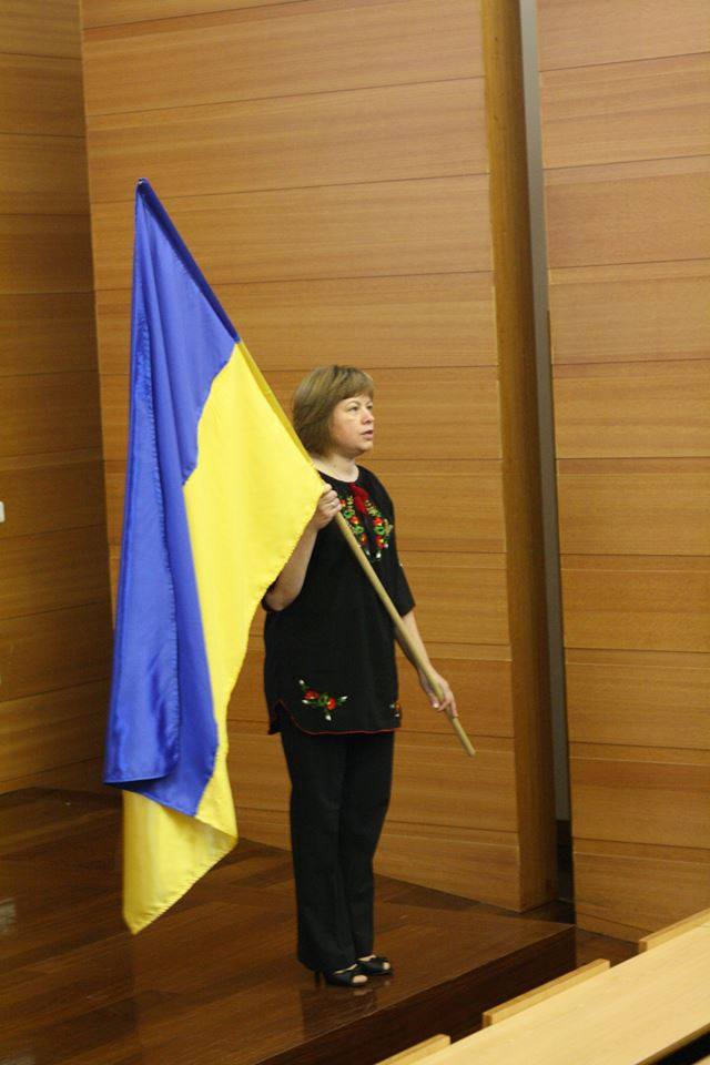 O Hino da Ucrânia / Гімн України звучить зі сцени актового залу Вищої школи технології та управління Аґеди Університету Авейру. Це гордо!