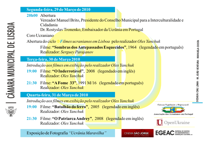 (organizado por: Concelho Municipal para a Interculturalidade e Cidadania da Camara Municipal de Lisboa, a Direcção da Associação dos Ucranianos em Prortugal - Spilka, e o Cinema São Jorge)