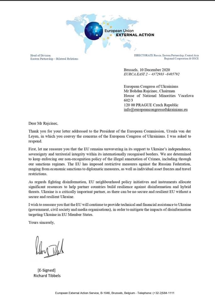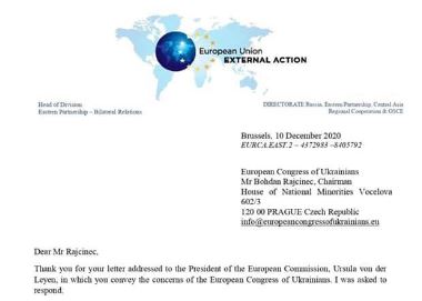Я вдячний вам за листа надісланого президенту Еуропейської комісії Урсулі фон дер Леєн, в якому ви висловили стурбованість щодо Еуропейського Конгресу Українців.