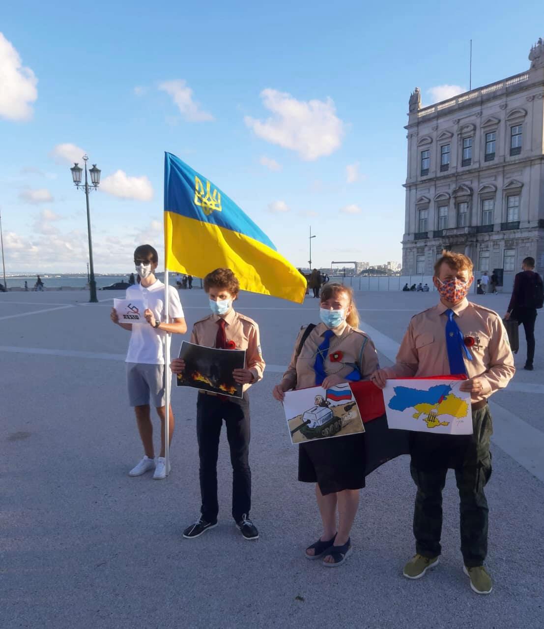 З перших днів "Революції гідності" в Києві у 2013 році велика українська громада в Португалії, майже в кожному місті країни демонструвала підтримку своїм співвітчизникам в Україні, які вийшли з протестами проти жорстокого застосування поліцейської сили проти молоді, яка мирно демонструвала свій проєвропейський вибір, після того, як президент Янукович, незважаючи на свої заяви, раптом захотів повернути Україну до нового союзу з Росією. Країни, де грубо порушуються права людини і яка застосовує політику агресії проти сусідніх країн.