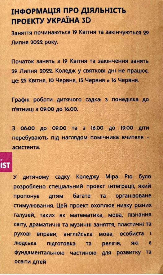 У рамках допомоги Україні, один з найпрестижніших ліцеїв Лісабону «Mira Rio», приймає безкоштовно українських дітей, що мусіли переселитися до Португалії у зв’язку з війною, віком від 3 до 6 років.