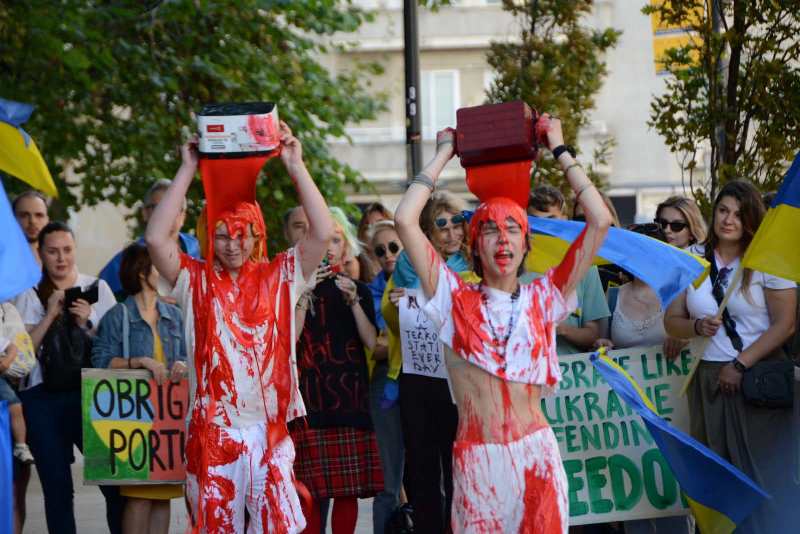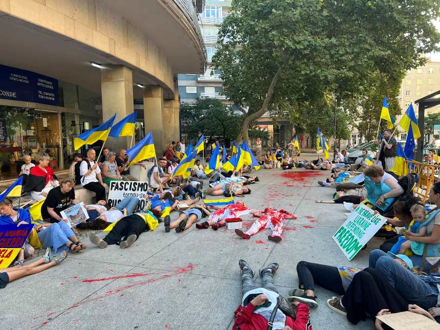 Вражаючий перфоменс молодих українців перед посольством московіі у Лісабоні, які продемонстрували свою біль через геноцид, який росіяни вчиняють проти українців.
