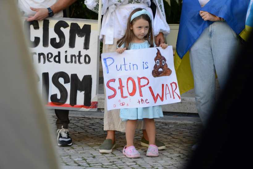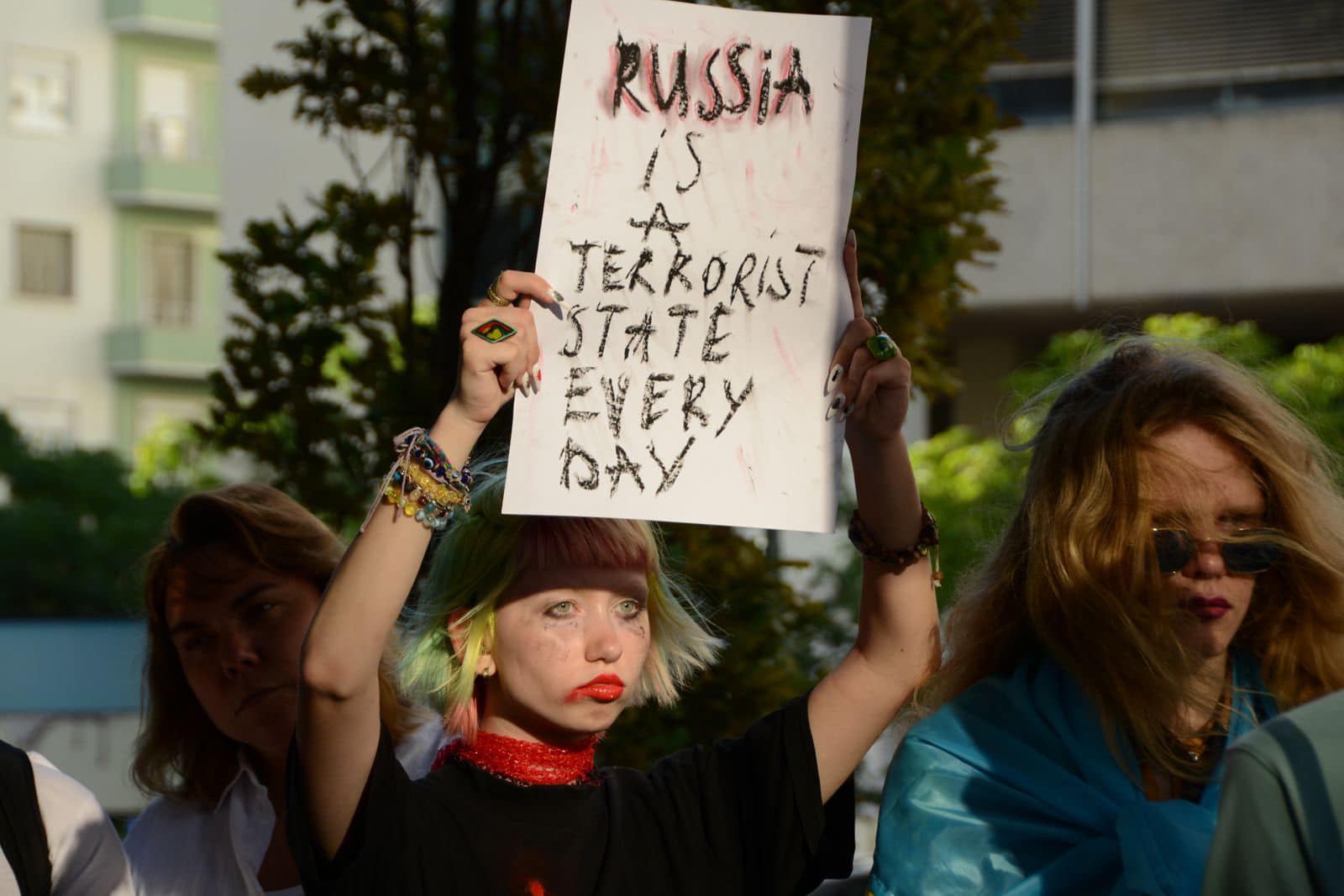 18Українці у Лісабоні приєдналися до світової хвилі протестів проти нового жахливого терористичного акту росії - ракетної атаки на дитячий шпиталь в Києві 8 липня.