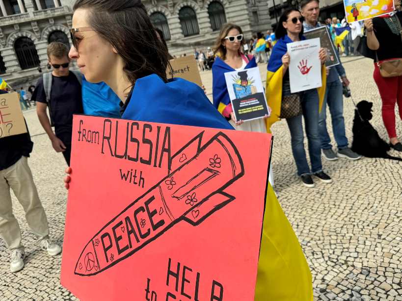 Українська громада міста Порто зібралася на акцію в підтримку України. Країна терорист вбиває українців щодня.
