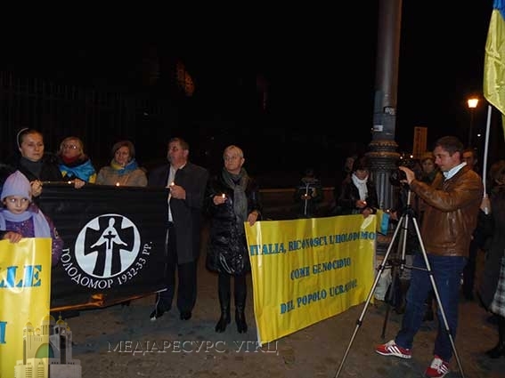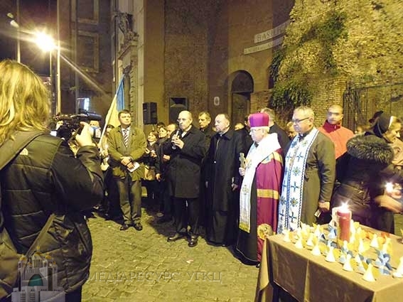 Владика Іриней (Білик) у співслужінні з чисельними священиками відслужив панахиду за жертви Голодомору-геноциду та звернувся до присутніх з пастирським словом. Опісля присутні на мітингу представники мерії Рима, директор Департаменту соціальної політики Ізабелла Коцца і працівник цього Департаменту Орнелла Керубіні від імені римської мерії висловили солідарність українському народу та запалили головну свічку заходу.
