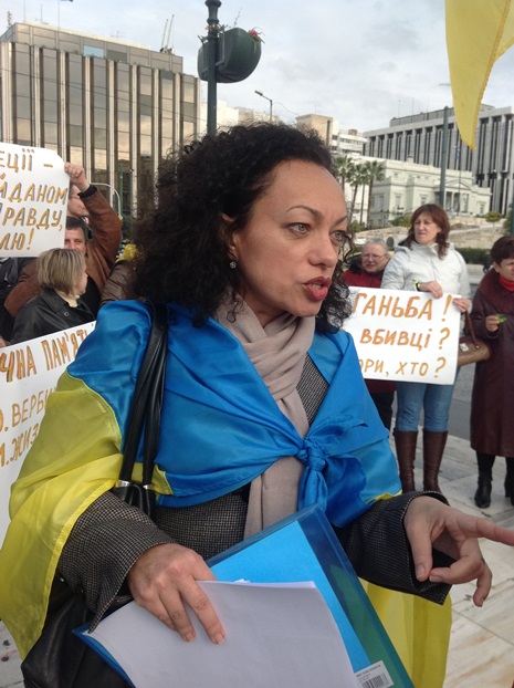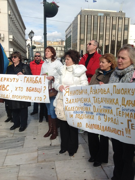 Ми звинувачуємо президента Віктора Януковича та його уряд у тому, зазначила в своїй заяві до грецької преси голова товариства «Українсько-Грецька Думка» Галина Маслюк, не тільки в небаченому свавіллі та приниженні гідності українців, але й у тому, що він не виправдав сподівань свого народу, не зумів відстояти національні інтереси ввіреної йому країни, внаслідок чого наша країна стала плацдармом для боротьби іноземних сил, загрожуючи навіть цілісності країни. Це не може бути пробаченим. Президент та його злочинний уряд повинні негайно піти у відставку.