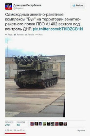 A informação foi confirmada pelos próprios terroristas, que ainda no dia 29 de junho se gabaram nas redes sociais de possuírem no seu poder um “Buk” operacional (imagem em cima).