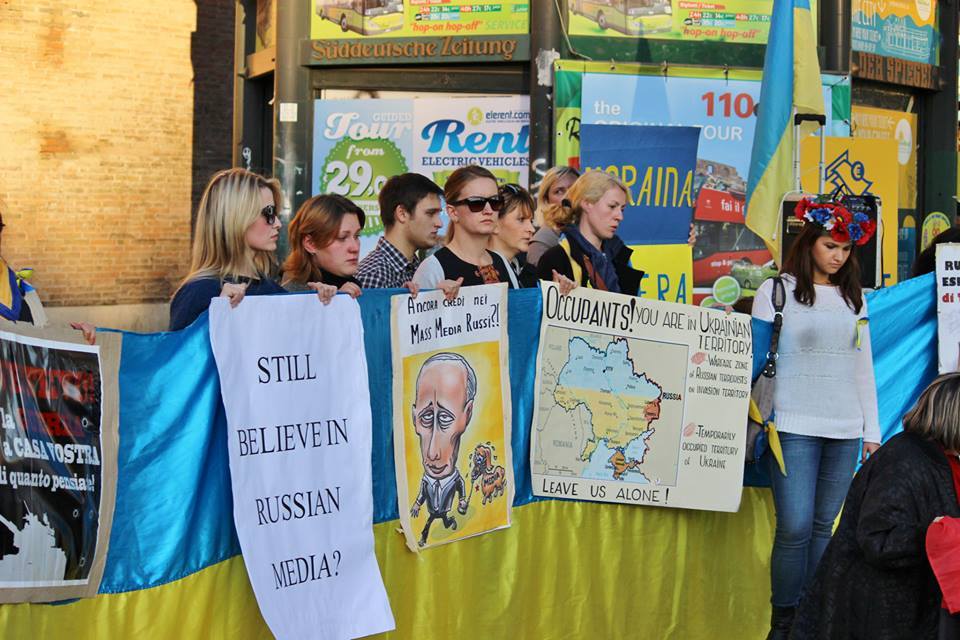 «Окрема сценка була присвячена маніпуляціям в європейській пресі, зокрема, італійській, щодо висвітлення реальної картини на сході України. Театралізований Путін за допомогою газпромівських грошей вдало керує маріонетками — італійськими виданнями. На плакатах були написані назви телеканалів та газет, які в своїх репортажах допускали найбільше неправди щодо України», — розповів Олесь Городецький.