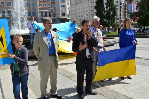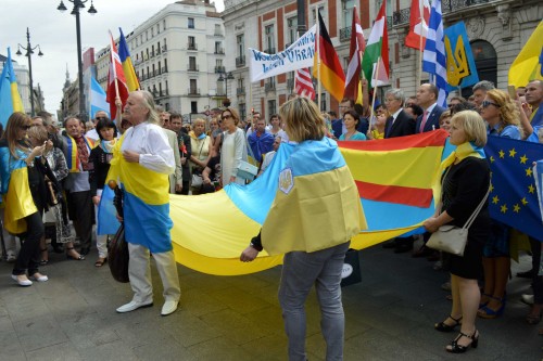 Ще одним важливим заходом стало проведення мітингів і мирної ходи під гаслом «Світове українство з Україною» центром столиці, починаючи від площі Іспанії та завершуючи центральною міською площею Соль. Учасники зборів мали також нагоду помолитися в українській парохії Благовіщення Пресвятої Богородиці спільно із заробітчанами, а потім ще й поспілкуватися з ними в неофіційній обстановці.