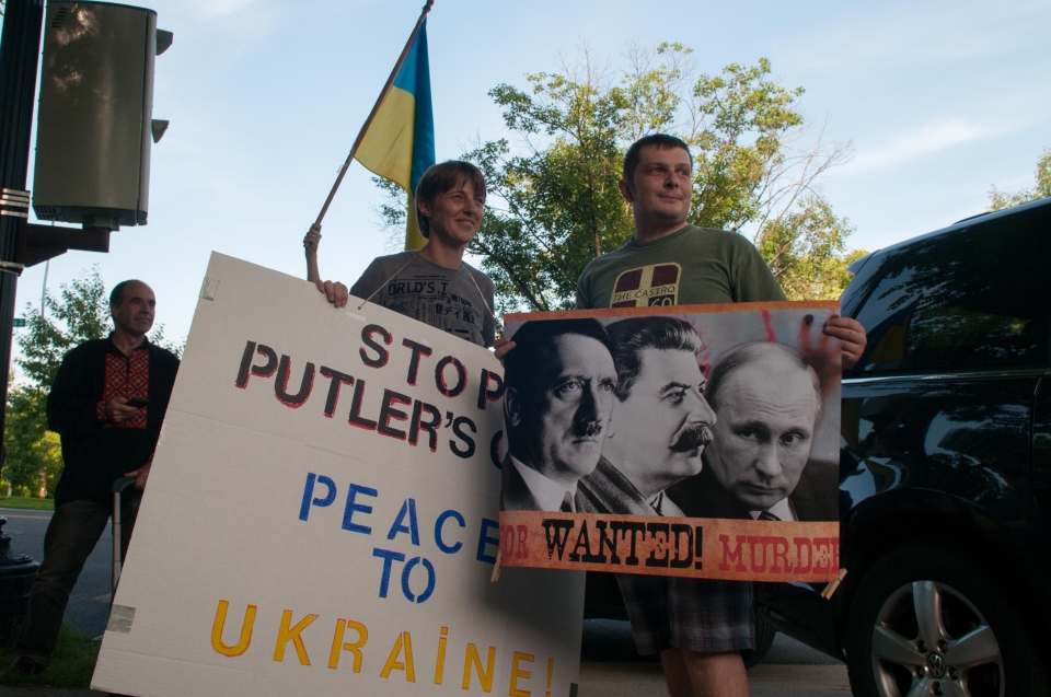 Кілька десятків протестувальників 12 червня вийшли під стіни Посольства Росії у Вашингтоні, де тривав прийом з нагоди Дня Росії, щоб вкотре звернути увагу на розв’язану Кремлем криваву політику, передаєпортал Vidia з посиланням на Укрінформ.