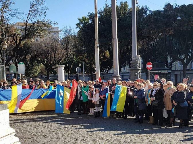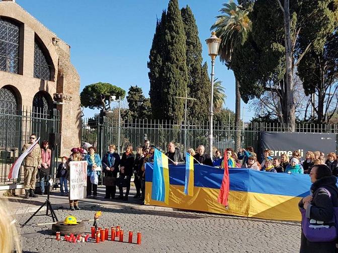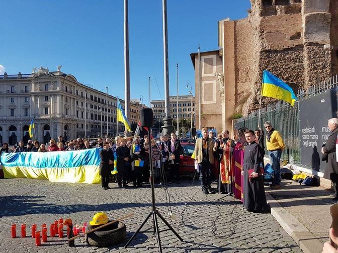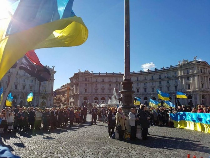 Близько 300 українців та італійців зібралися сьогодні, 19 лютого, на центральній площі Риму - площі Республіки, щоб пригадати події трьох річної давнини та вшанувати Героїв "Небесної Сотні".