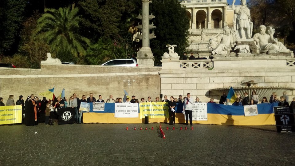 26 листопада 2017 року, на одній з центральних площ Риму - площі дель Пополо, українська громада італійської столиці вшанувала пам'ять жертв Голодомору - геноциду українського народу.