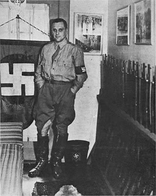 Anastasy Vonsiatsky, na sala de armas do partido, EUA, final da década de 1930