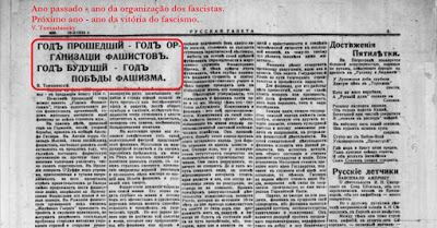 Nesta década em São Paulo foram publicados três jornais russos da linha fascista: «Prizyv» (Apelo; 1936–1938), «Mladorossiyskoe slovo» (Palavra dos Mladorossi, 1934-1938; passando se chamar em 1938-1940 de “Slovo” (Palavra).