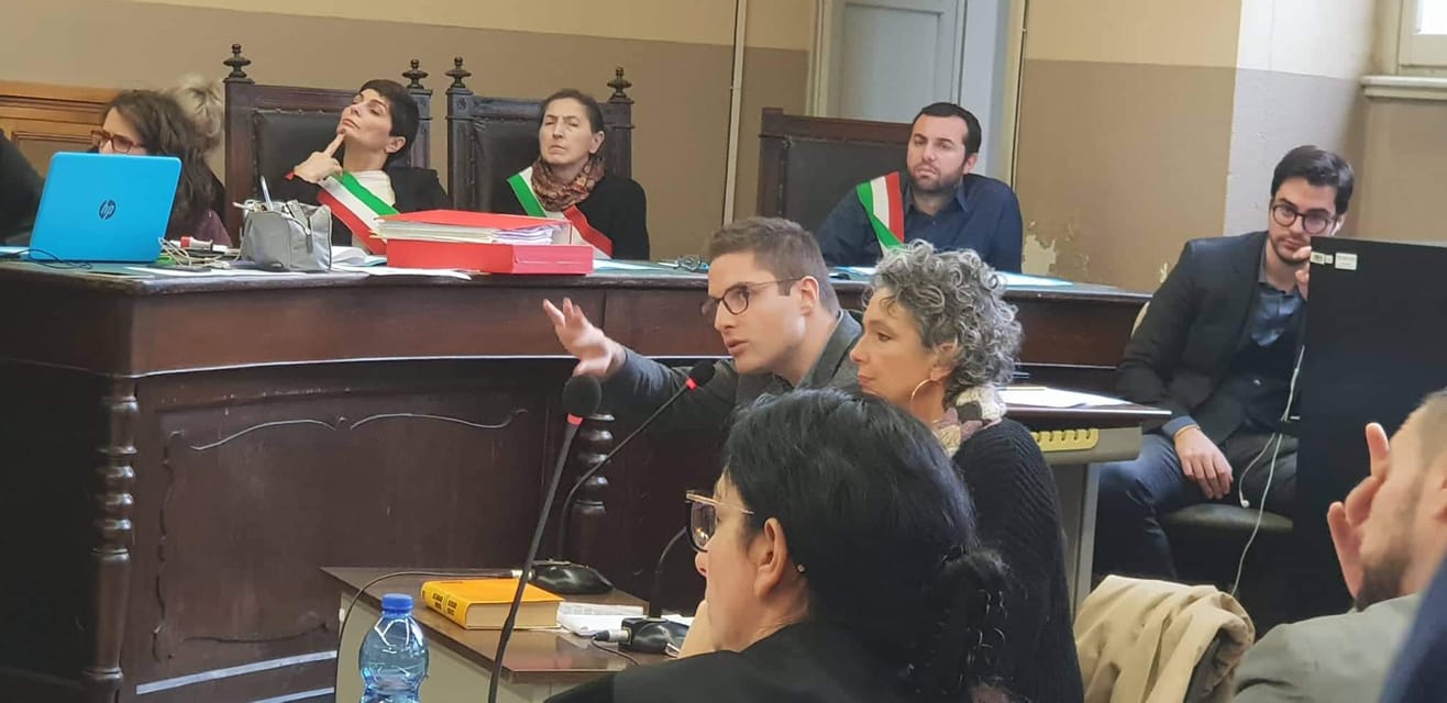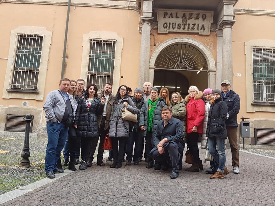 1. Суддя відхилила прохання про перенесення засідань у більший зал, оскільки більшого залу у суді Павії немає. Але дозволила журналістам перейти вперед, де знаходяться сторони процесу, звільнивши трохи місця для чисельних глядачів.