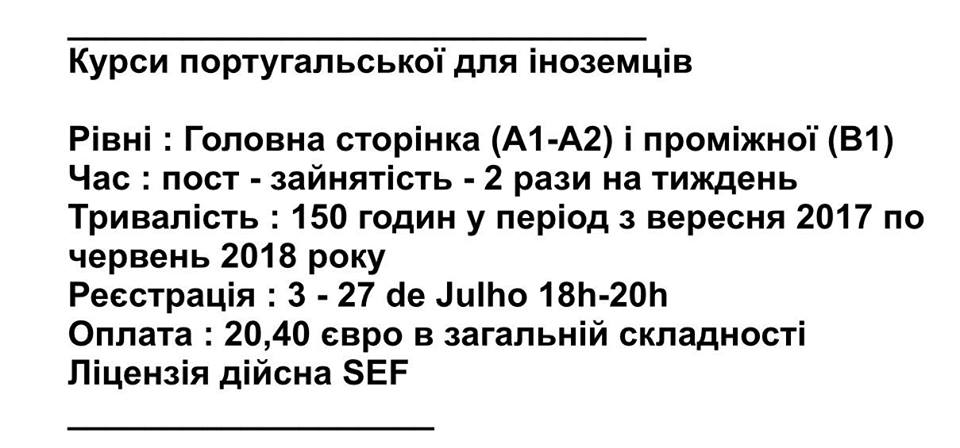 Група вчителів португальської мови запрошує на безкоштовну програму удосконалення португальської мови для мігрантів.