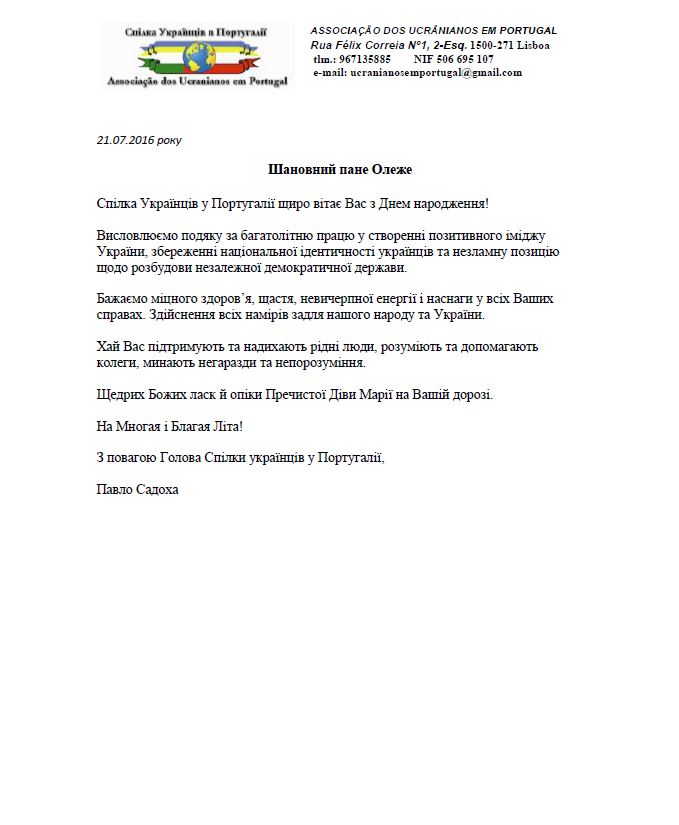 З повагою Голова Спілки українців у Португалії,
