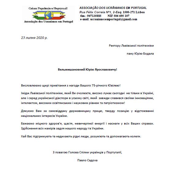 Імідж Львівської політехніки, який Ви очолюєте, високо лунає сьогодні не тільки в Україні, але і серед української діаспори в усьому світі, який завжди славився своїми інноваціями, інтелектом, високим освітянським і науковим рівнем та патріотизмом!