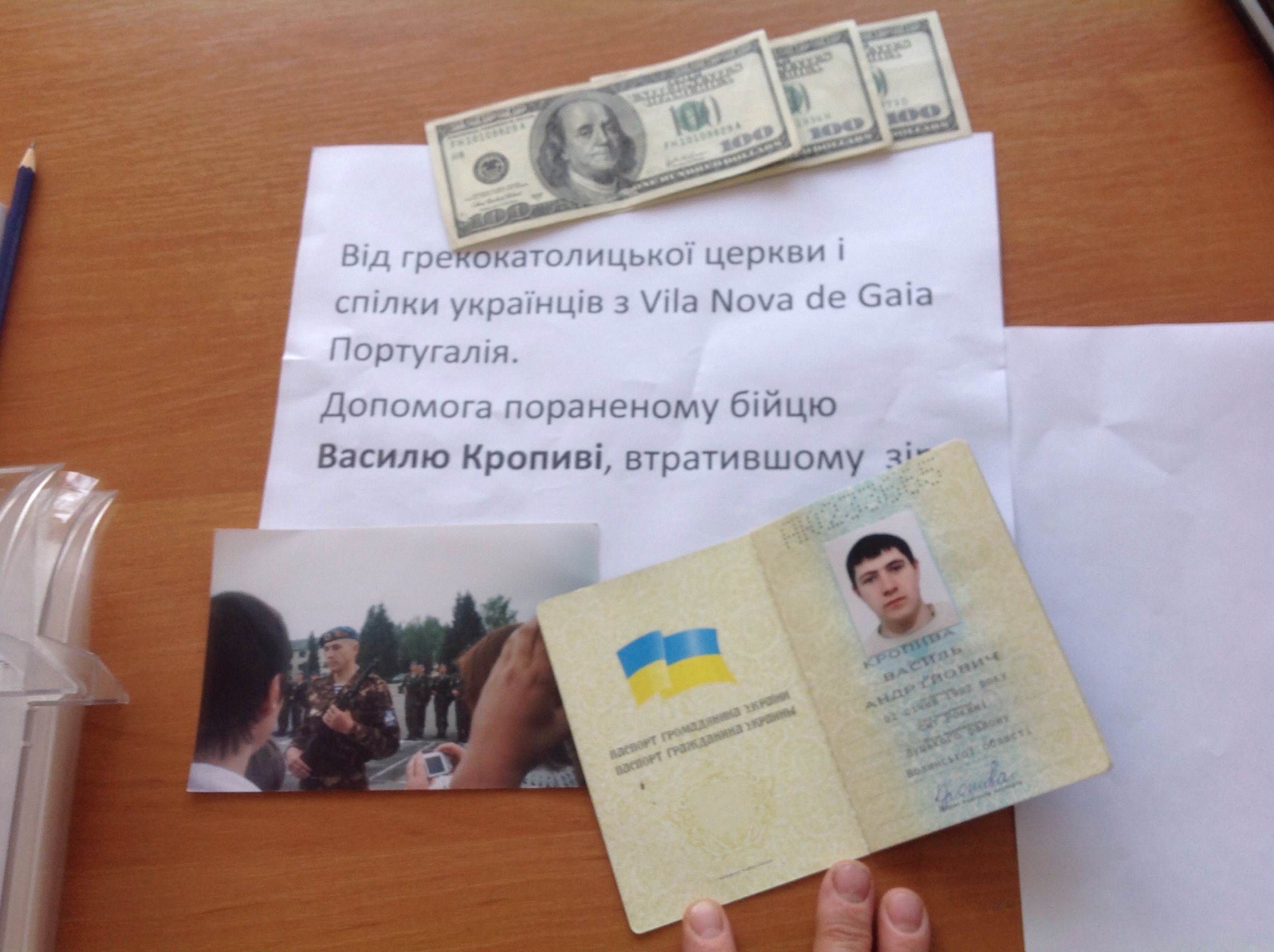 Українська Греко-Католлицька Церква і осередок Спілки українців у Португалії міста Віла Нова де Гая передали фінансову допомогу бійцю АТО Василю Кропиві через Волинський обласний координаційний центр з допомоги учасникам АТО.