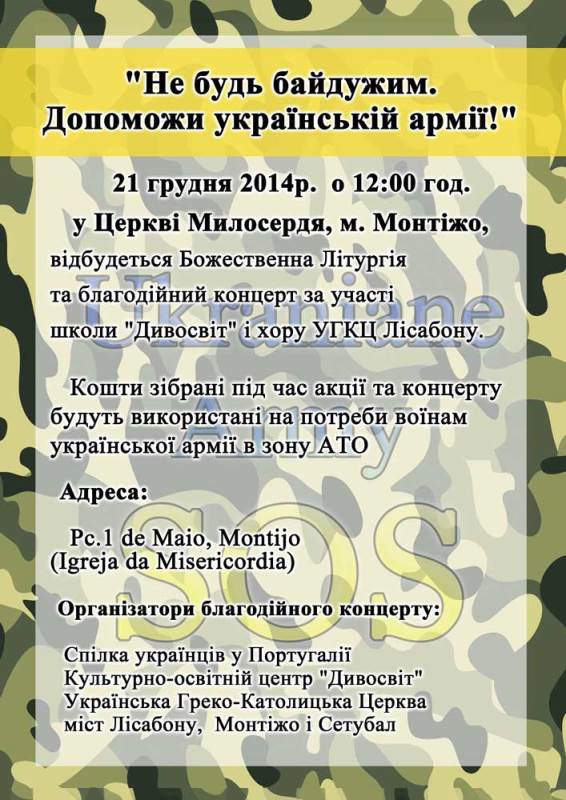 відбудеться Божественна Літургія та благодійний концерт за участі школи "Дивосвіт" і хору УГКЦ Лісабону.