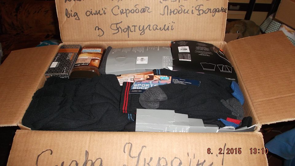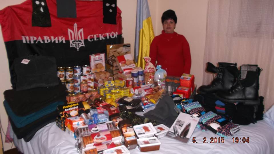 Дуже вчасно нам передала рибних консервів,одіяло,спальний мішок і різне Lesya Churko для наших добровольців Правого Сектора, якраз ми складали останні посилки і дзвінок від Iriny Rashydova приїзжайте догружайте і нехай їде до наших захисників, хоча ми з Lesey навіть не знайомі.