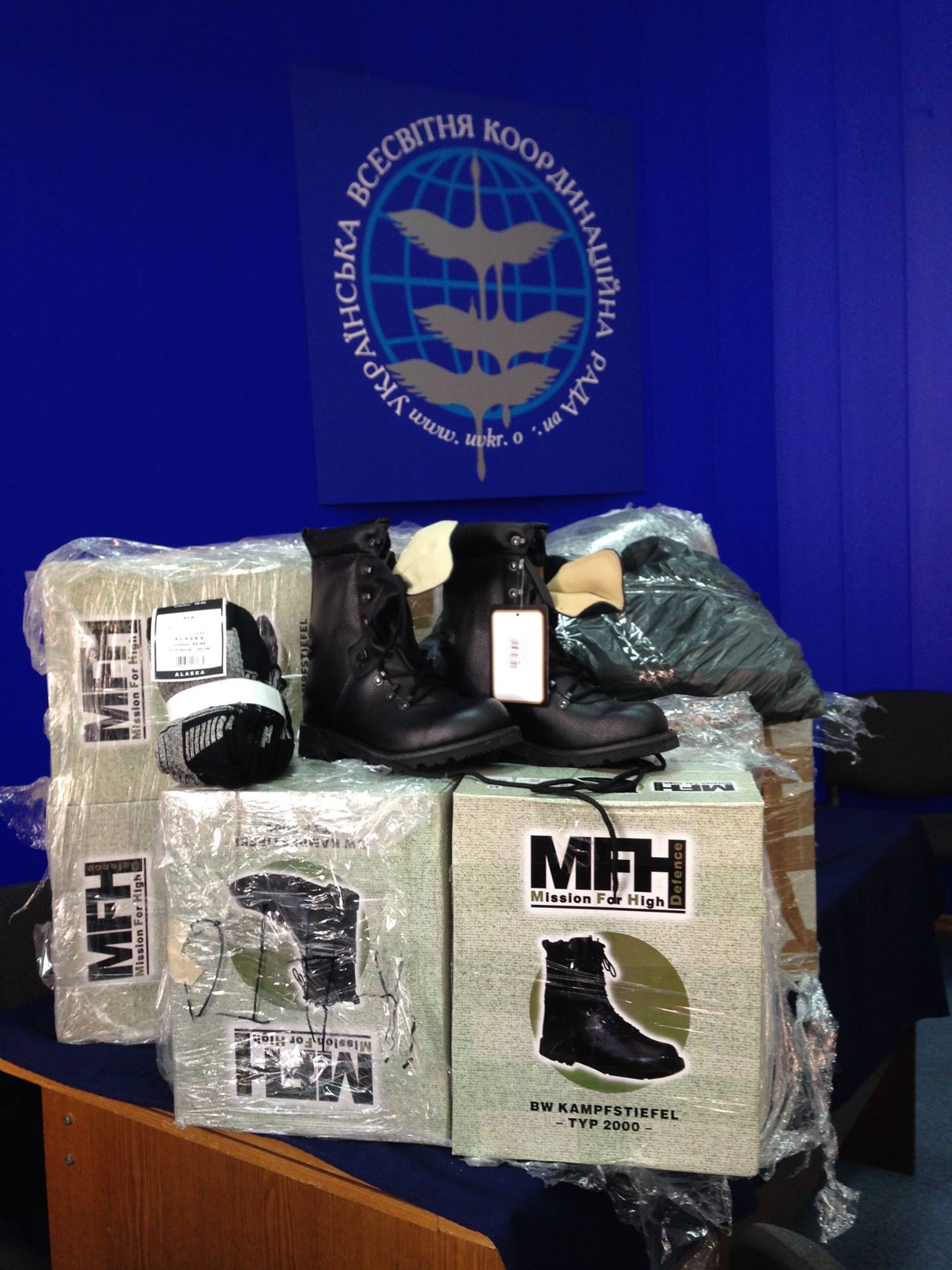 Спілка Українців Португалії, через Українську Всесвітню Координаційну Раду, передала 30 пар берців натівського зразка для українських вояків.