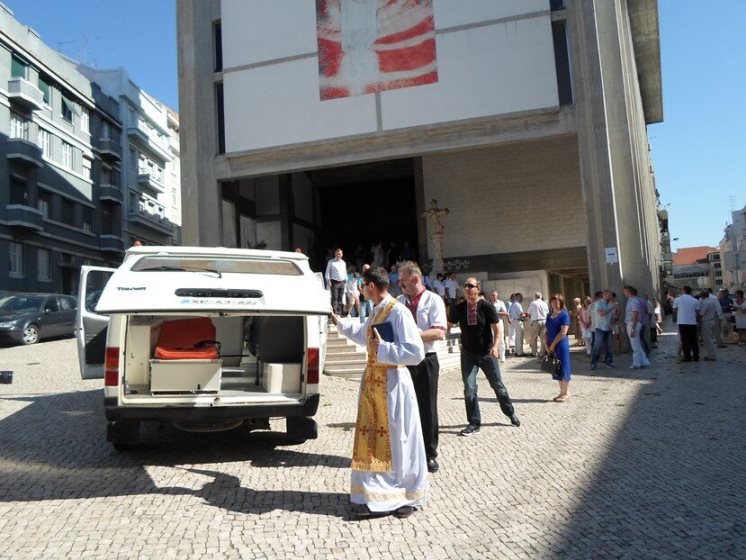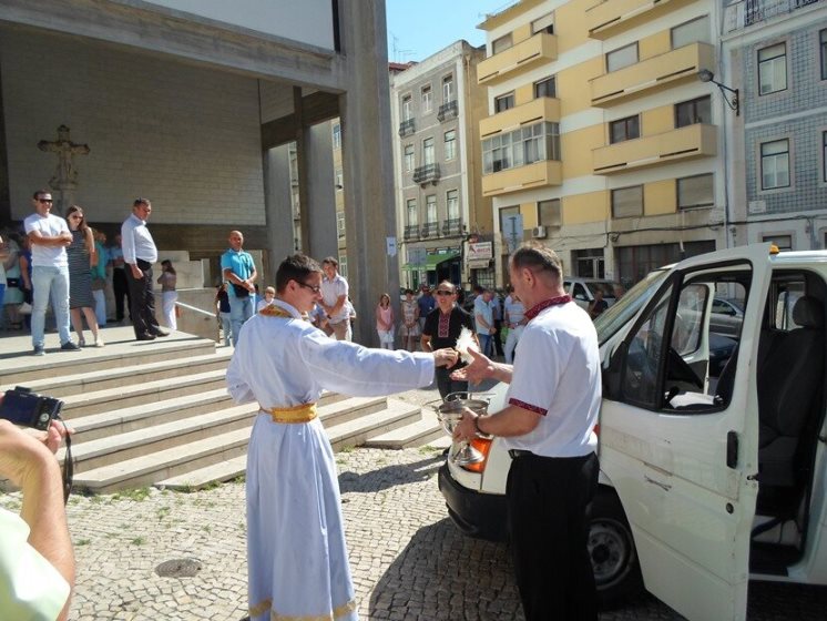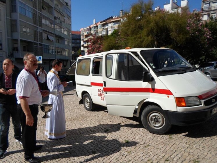 Сьогодні, 2 серпня, після Святої Літургії в церкві УГКЦ в Лісабоні, о. Ілля Фіголь, освятив авто "Швидку медичну допомогу", яку придбано за пожертви української громади Португалії.