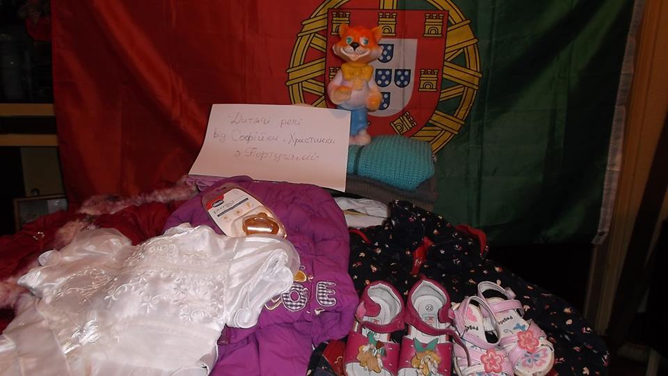 ВІДПРАВЛЕНА чергова допомога із Португалії дитячі речі для дітей українських патріотів ПС від кримського патріота Yumanova Mykoly, Софійки і Христинки з міста Кашкайш від нас печиво, шоколад, рибні консерви і т.п., а також від сім'ї Олесі Олега Братини грошова допомога.