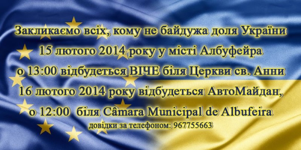 13 лютого 2014 року у Лісабоні, вул. Largo do Rilvas з 13:00 до 14:00, відбудеться мітинг напроти МЗС Португалії (Ministério Dos Negócios