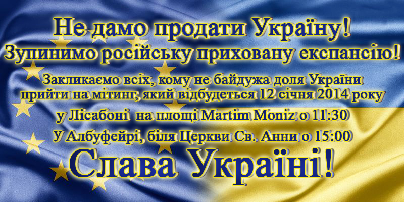 Як і було узгоджено на попередньому мітингу 12 січня, сьогодні, представники ЄвроМайдану в Португалії провели мітинг під посольством України в Португалії і передали послу – Олександру Никоненко вимогу, висвітлювати на офіційному сайті посольства