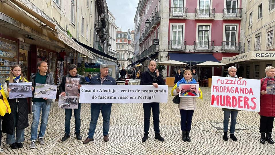 A comunidade ucraniana em Portugal juntamente com os refugiados da Ucrânia, realizaram hoje um protesto contra os apoiantes do fascismo russo que participaram numa conferência em Lisboa: "Donbas 2014-22. Testemunhas".