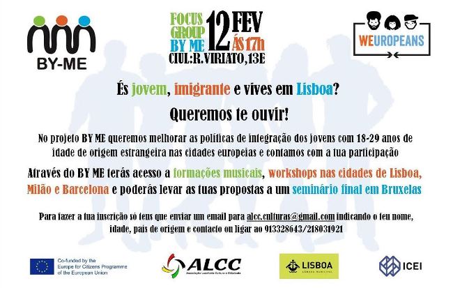 A Associação Lusofonia Cultura e Cidadania em parceria com a Câmara Municipal de Lisboa está a organizar o evento "Focus Group BY-ME" no seguimento das entrevistas realizadas no âmbito da investigação do Projeto BY-Me, no dia 12 de Fevereiro entre