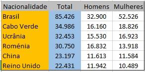 Згідно статистики Міграційної Служби у 2017 році в Португалії зареєстровано 32453 українців