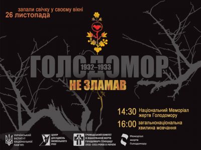 «Голодомор не зламав» — до Дня пам’яті Голодомору цьогоріч згадуватимуть видатних діячів, які пережили геноцид. Пам’ятні заходи відбудуться по всій Україні та в 32 країнах світу.