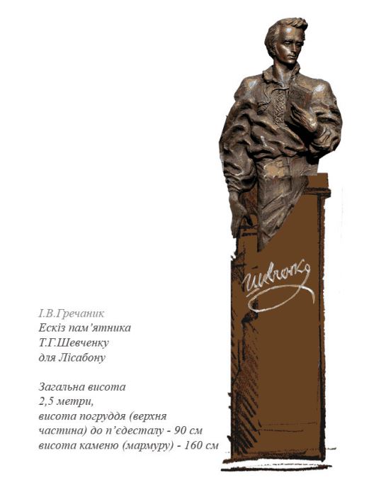 ![]() Опис проекту пам'ятника Шевченку для міста Лісабон, автор Ігор Гречаник |