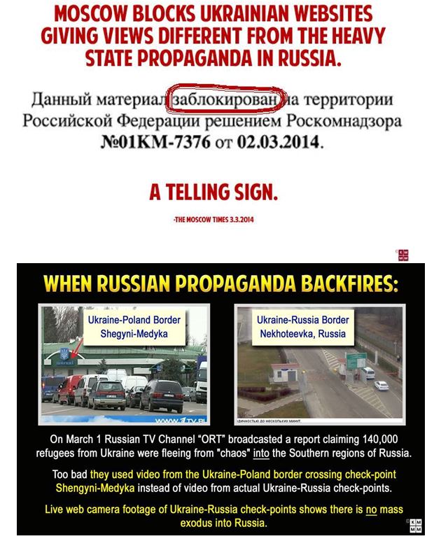 та топчуть чи спалюють їх (Севастополь, див. з хв 2.10 http://www.youtube.com/watch?v=RMkhXXF4ceI або Керч http://www.youtube.com/watch?v=Xve2BJe-RcE ), спалюють українські книжки (на фото «Новітня Історія України» http://voronz.in.ua/recomend/7-1-14-15336 ) , нападають на активістів українських мітингів (наприклад, в Бахчисараї https://www.youtube.com/watch?v=0jA56THmfic , з плакатами мирно стоять жінки, на них нападають агресивні проросійські активісти, в Донецьку 09.03.2014 жінку хотіли побити за те, що на ній був український прапор https://www.youtube.com/watch?v=b4prDff2dds , напад на журналістів в Криму, Севастополь (див. з 1.24 хв) https://www.youtube.com/watch?v=wdI3rzWrV9g ) тощо. При цьому учасники проросійських мітингів стверджують, що виступають проти фашистських та екстремістських об’єднань, що нібито були сформовані на Західній Україні та в Києві (що є абсолютно непідтвердженим). Такі настрої викликані переважно повною дезінформацією з боку російських каналів та інтернет-видань (наприклад, в Криму заборонили трансляцію усіх українських каналів, натомість пустили в ефірі провідні російські телеканали – Росія 1 та НТВ).