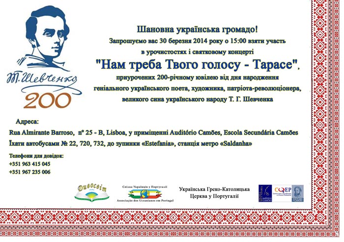 Запрошуємо вас 30 березня 2014 року о 15:00 взяти участь в урочистостях і святковому концерті