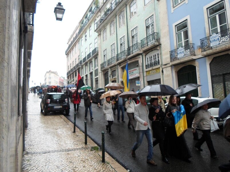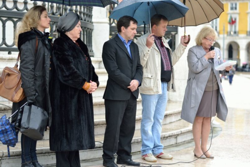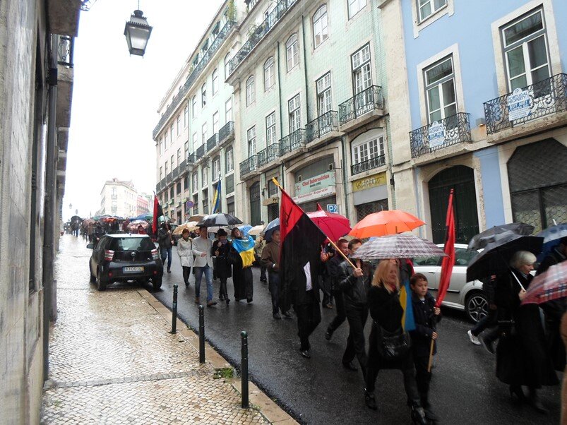 У святу неділеньку 23 листопада, здавалося, й Лісабон плаче разом із українською громадою. Дощ лив, як із відра. Одначе, незважаючи на зливу , Prasa da Comersia близько полудня ожила. Сюди прийшли українці, що проживають у Португалії, аби запалити скорботні свічі у пам'ять померлих співвітчизників від Голодомору в 1932-1933 роках. Опущені національні Стяги із чорними стрічками, в руках лампадки. Люди одягнені в темний одяг, в очах сум і німі запитання: Чому кожне покоління Великого Українського Народу мусить нести тяжкий хрест.