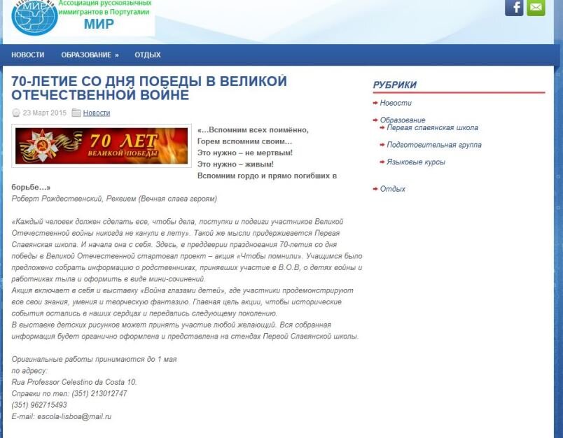 Святкування "Дня Победьі" в асоціаціаціях іммігрантів: "Калина" та "Мир" у Португалії з якими Українська Міжнародна школа підтримує активну співпрацю.
