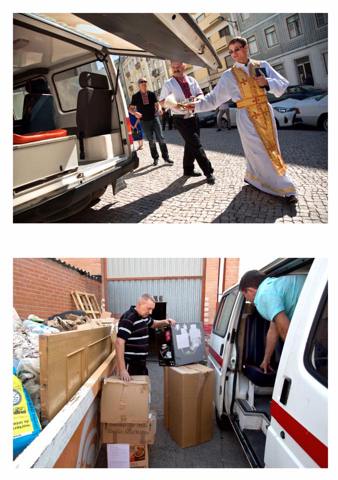 За тиждень до від'їзду, отець Ілья, поблагословив та окропив святою водою цю швидку біля церкви Святого Юрія (São Jorge de Arroios) в присутності української громади. Незважаючи на економічну кризу, яка зараз переживається в Португалії, бажання допомогти своїм, в Україні, гарантувало досить оперативне зібрання 2500€ на купівлю, ремонт і дорогу для швидкої допомоги.
