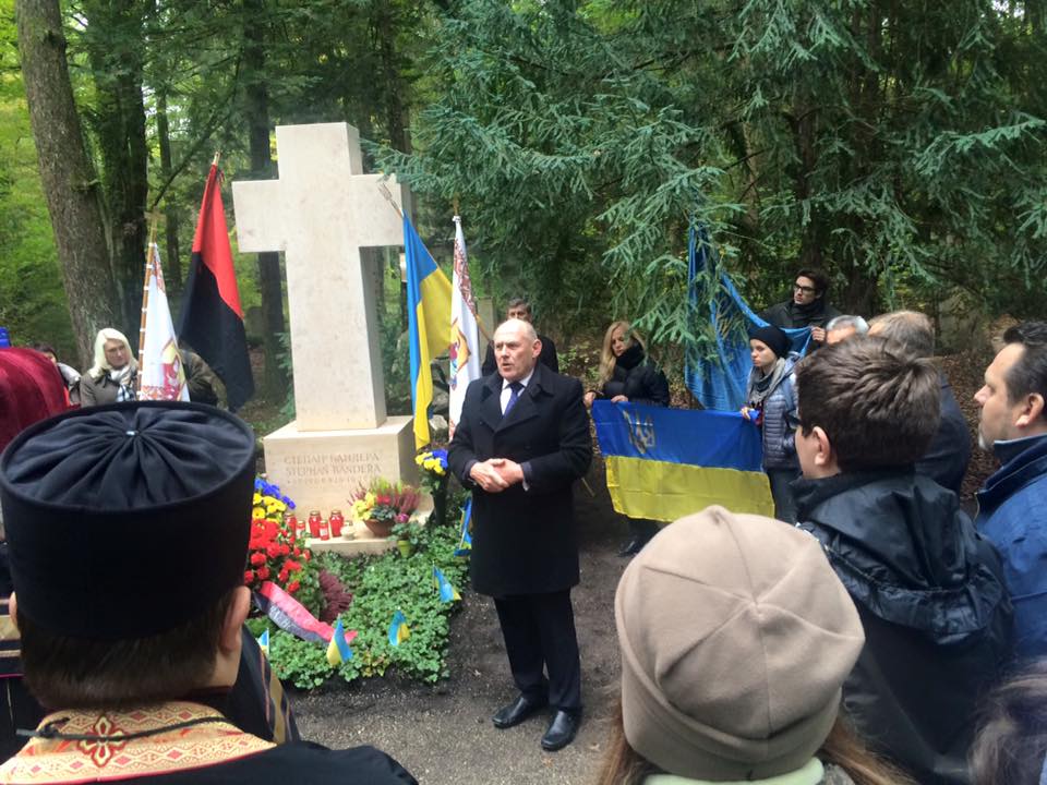 За його словами, на освяченні були присутні й виступили голова Проводу ОУН Стефан Романів, Генеральний консул України в Мюнхені Вадим Костюк, а також онук Провідника ОУН Орест Куцан.
