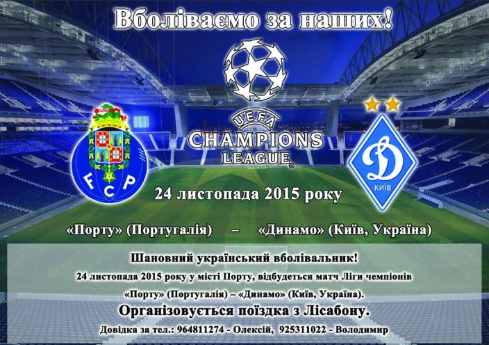 24 листопада 2015 року у місті Порто, відбудеться матч Ліги чемпіонів