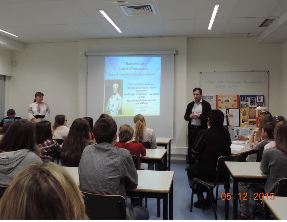 Символічно і з Божим благословенням відбулася перша зустріч новопризначеного Надзвичайного посла України в Португалії Інни Василівни Огнівець з українською громадою в Культурно-освітньому центрі "Дивосвіт" при Спілці українців у Португалії. Адже, перше знайомство відбулося під час проведення в українській суботній школі "Дивосвіт" відкритого уроку "Митрополит Андрей Шептицький. Історія одніє долі, яка змінила світ" з нагоди 150-річчя народження митрополита Андрея Шептицького. І як наголосив присутній, також на уроці Єпископ-помічник Львівської архиєпархії Владика Венедикт, що зараз перебуває в Португалії: - Справжні цінності ніколи не роз'єднають українців. А власне перша розмова новопризначених посла Інни Огнівець та керівника Консульського відділу Посольства України - Володимира Камарчука з представниками Ради Спілки українців у Португалії показала, що Україна почала новий етап свого розвитку: який можна окреслити, як побудова Українського світу.