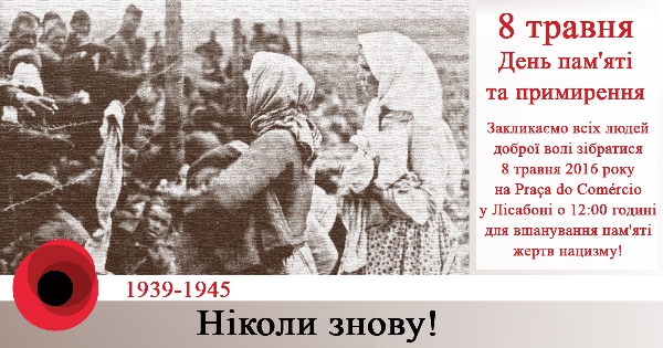 Закликаємо всіх людей доброї волі зібратися 8 травня 2016 року на Praça do Comércio у Лісабоні о 12:00 годині для вшанування пам'яті жертв нацизму!