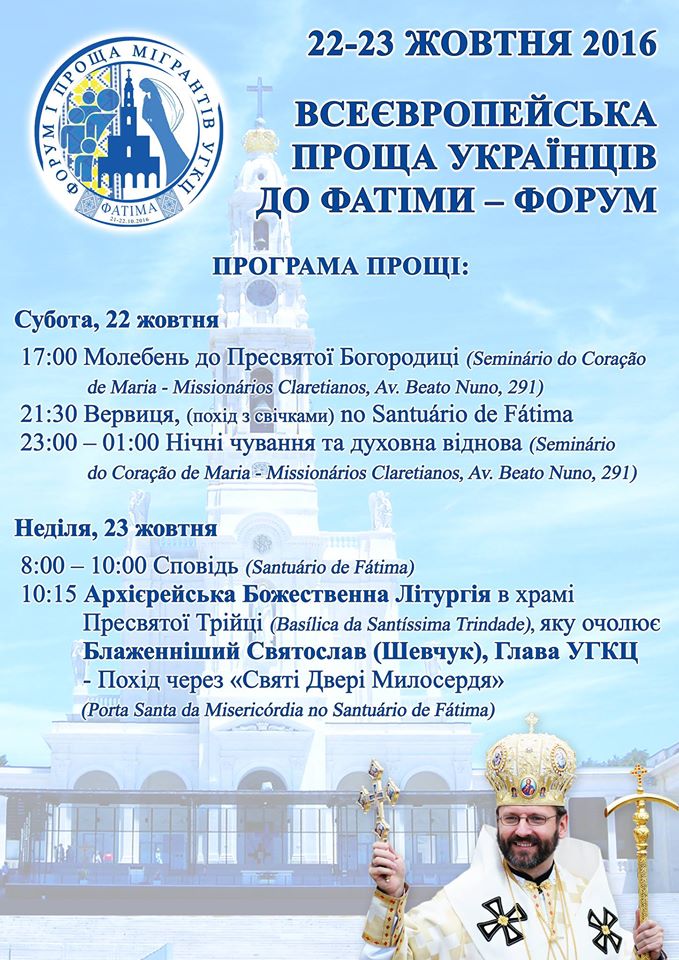 З ініціативи Пасторально-Міграційного Відділу УГКЦ 21-22 жовтня 2016 р. у Фатімі (Португалія) в контексті з'їзду Єпископів Східних Католицьких Церков Європи заплановано також проведення Форуму мігрантів Європи на тему: «Ініціативи Церкви та громадських організацій щодо пожвавлення духовного та суспільного життя новітніх українських мігрантів в Європі у світлі сучасних викликів». Крім того запланована у цих днях також і проща українських мігрантів Європи до Фатіми.