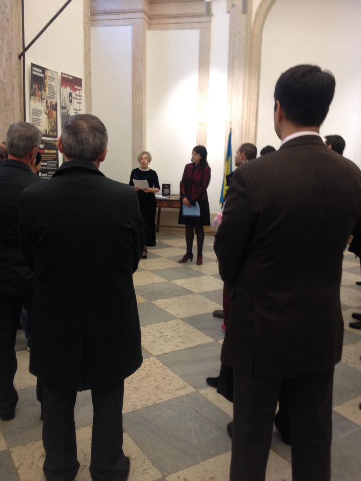 У церемонії взяли участь парламентарі, Посли іноземних країн, акредитованих у Лісабоні, громадські діячі, підприємці та представники української громади. Перед присутніми виступили Посол України у ПР ІннаОгнівець, депутат Асамблеї Республіки (парламенту) Португалії, Голова парламентської групи дружби "Португалія-Україна" Еуріку Брілянте Діаш , директор Національного Палацу Мафри Маріу Перейра, голова Спілки українців у Португалії Павло Садоха. Фотовиставка була люб'язно продемонстрована українською громадською діячкою Оленою Любарською.